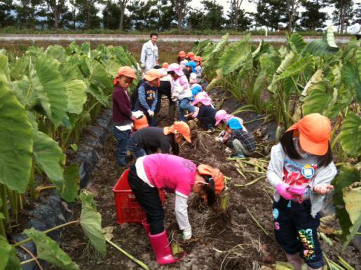 飯豊町内の保育園・幼稚園のお友達がめざみの里観光物産館の畑で作った里芋を収穫体験しました!大人でも大変な里芋掘り。子供達は元気いっぱい~ニコニコ笑顔でたくさんの里芋をとりわけていました。みんな一生懸命です♪
