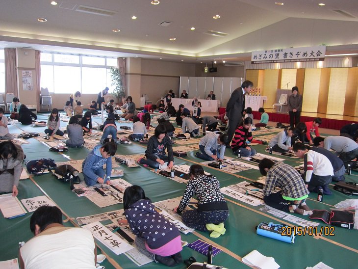 今回は小学生49名、中学生6名、一般7名の計62名の方が参加し、力強く書初めを行いました。