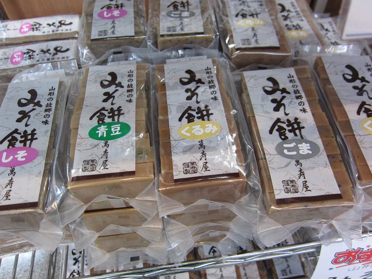 昨年、テレビ「秘密のケンミンshow」で紹介され爆発的な人気となったみそ餅です!!おもに山形県置賜地方で食べられています。種類は定番のくるみ・ごまをはじめ、青豆・しその4種類。地方発送も承っておりますので、ぜひご賞味下さいませ!!