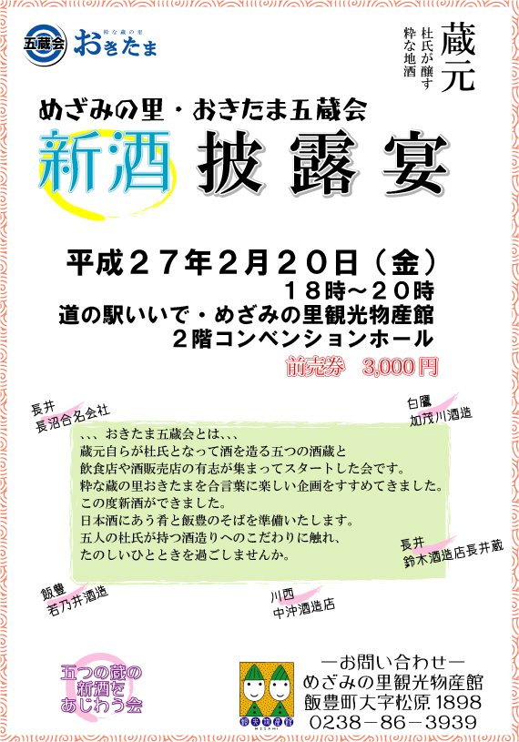 「めざみの里・おきたま五蔵会 新酒披露宴」を開催します!