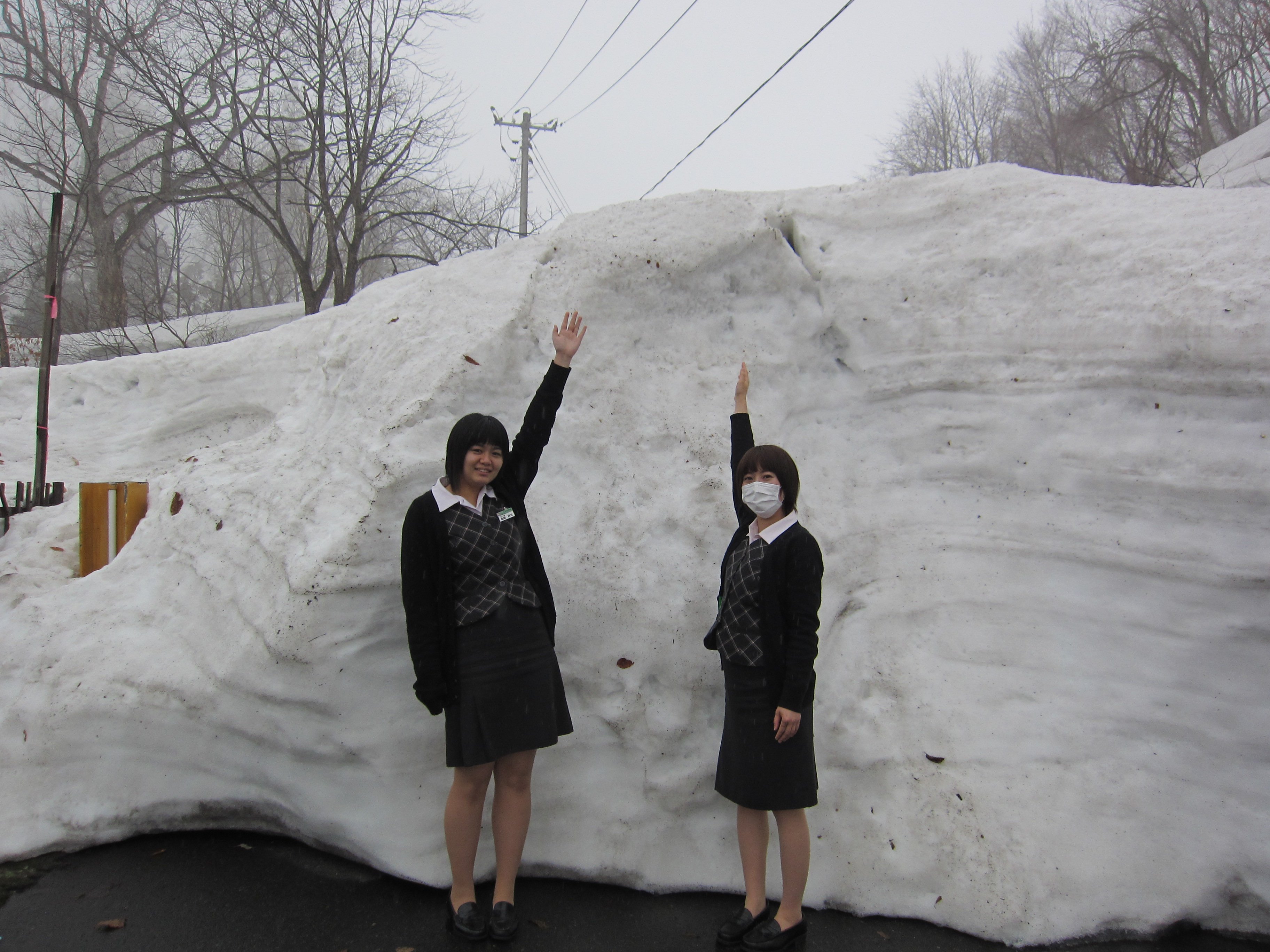 毎年恒例となりました、観光わらび園入口の積雪調査に今年も行って来ました!!今年はあいにくの雨で、とても霧が濃い中での調査になりました。気になる積雪量は・・・写真で見ても分かる通り、去年の量よりも多かったです!早い時期から雪が降ったのでそれが関係しているのでしょうか・・?早く雪が溶けて、わらび園がオープンできる日が待ち遠しいです!!
