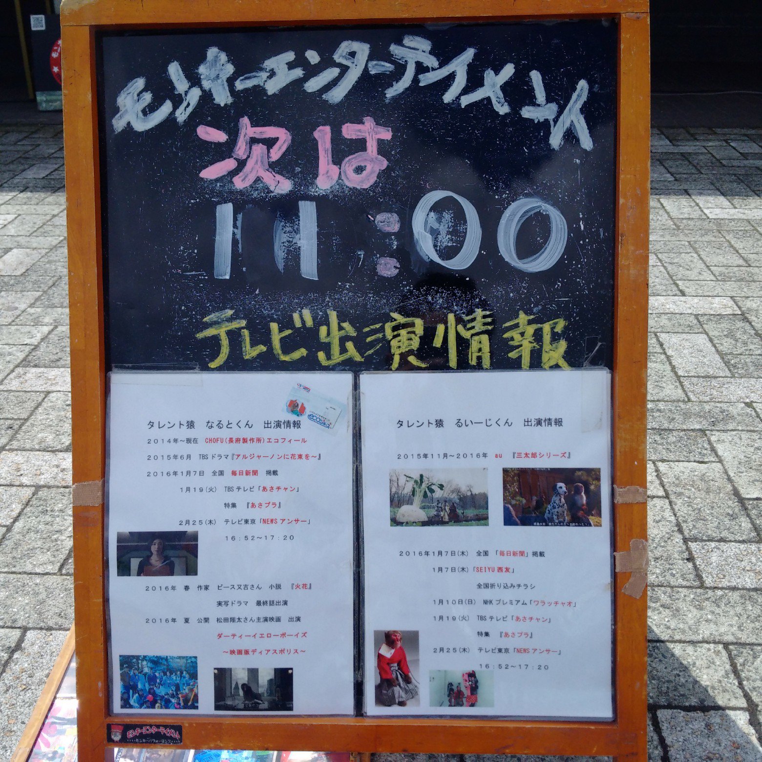 本日5/8日曜日GWイベント最終日です。テレビや映画で活躍中のタレント猿「なるとくん」がくるよ!1回目 11:00~2回目 13:00~場所は道路情報館まえショーの目安は15~20分ぐらいです。ショーの後は「なるとくん」と写真撮影ができるよ~※大変混雑が予想されますので、お早めにいらして下さい。