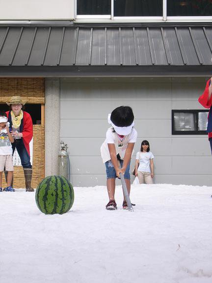 明日8月15日月曜日は道の駅いいで めざみの里観光物産館の中庭で毎年恒例の「真夏の雪まつり」が開催されます!皆さまのお越しを 100tの雪と一緒にお待ちしております!