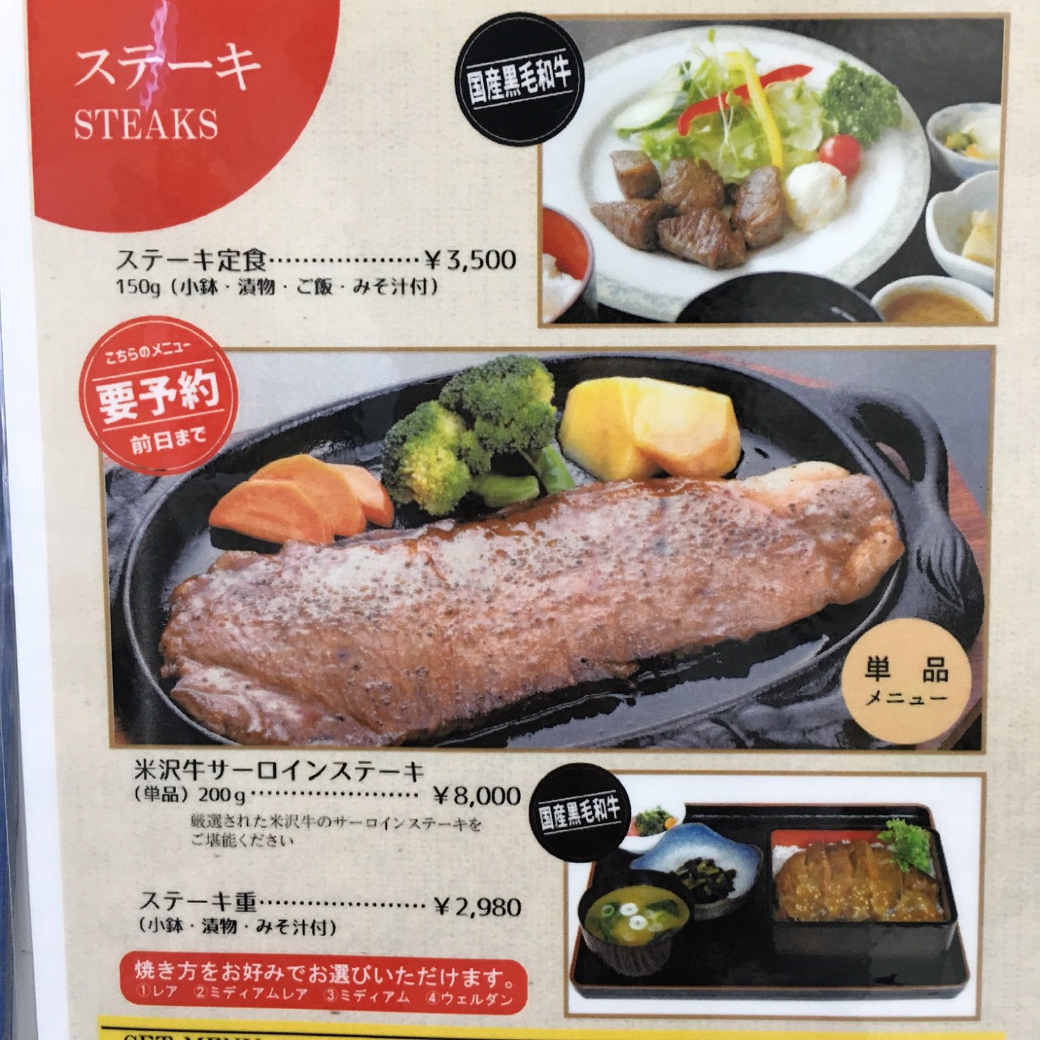 国産黒毛和牛「ステーキ重」2,980円も