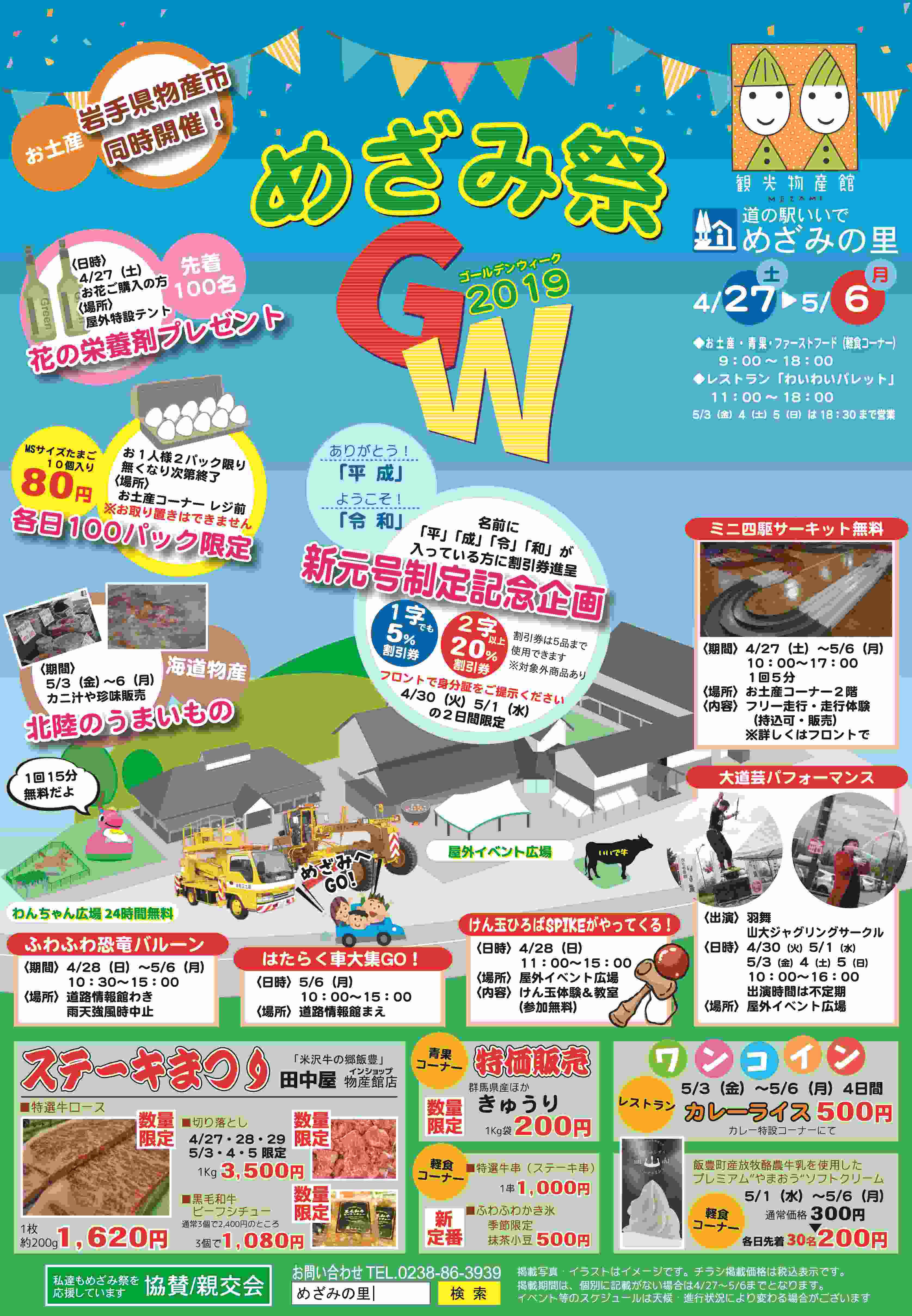 4/27~5/6開催のめざみ祭GWのご案内です。