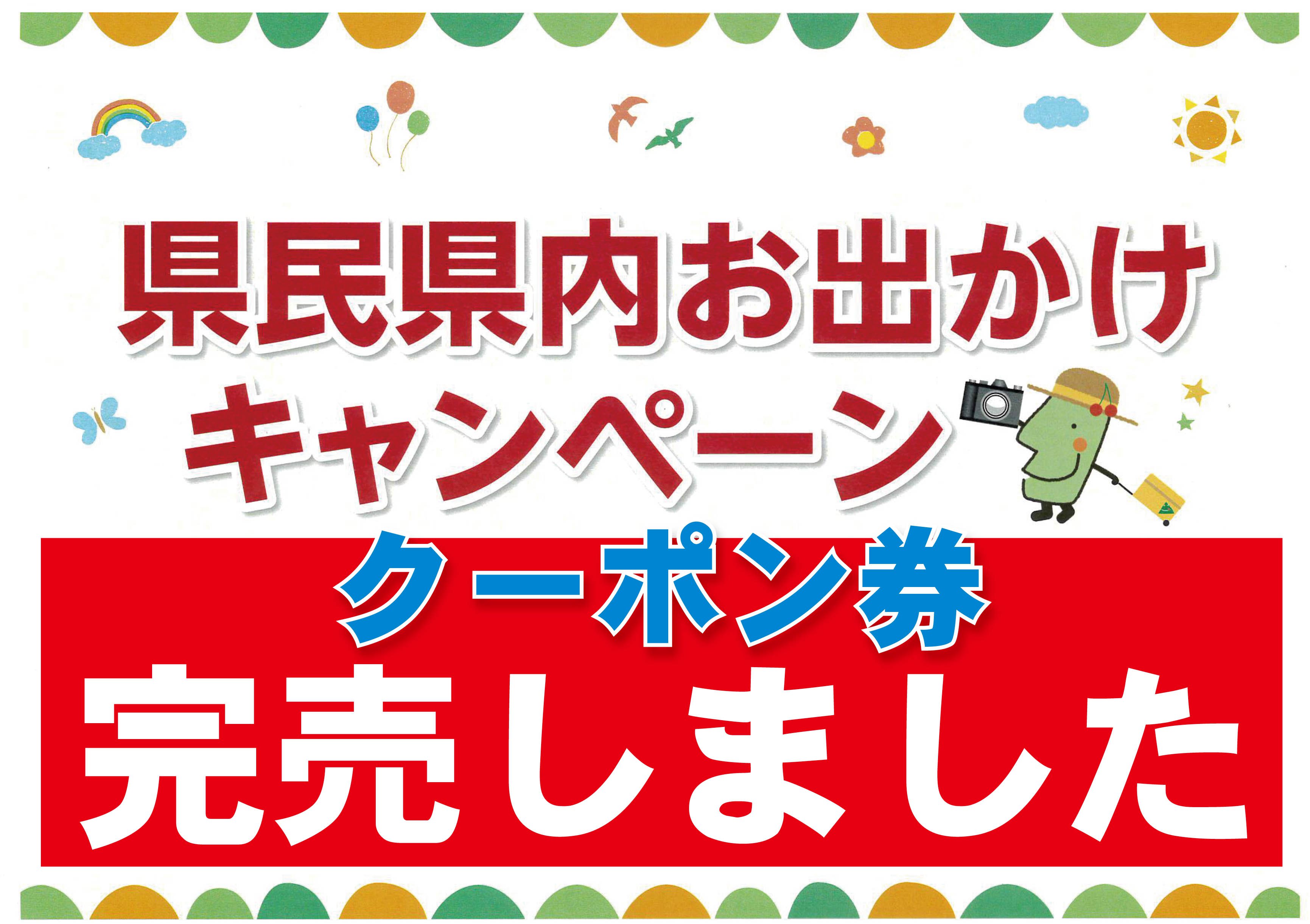 県民県内お出かけキャンペーン第2弾クーポン券は完売となりました。