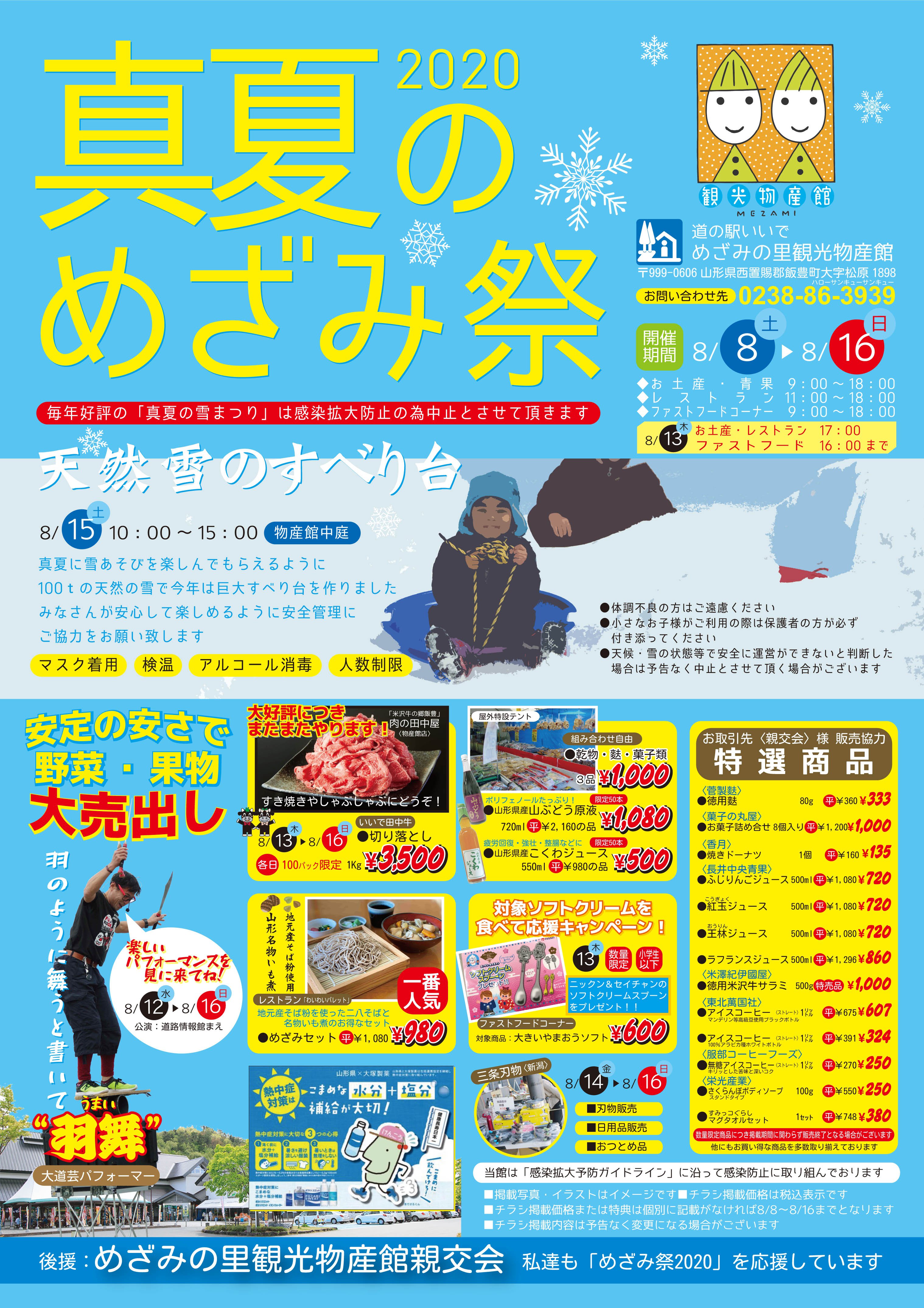 ※コロナウイルス感染拡大防止のため、毎年8/15恒例の「真夏の雪まつり」は開催中止とさせて頂きます。