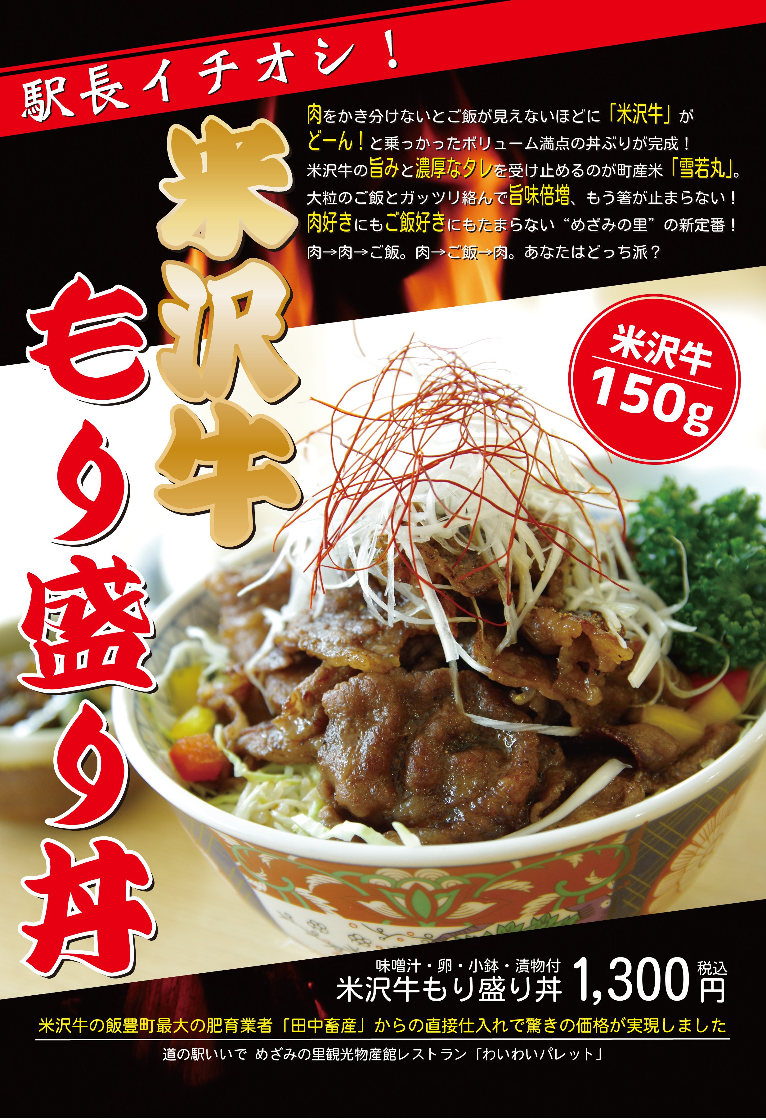 レストランわいわいパレットにて9/19より提供が開始されます、「米沢牛もり盛り丼」