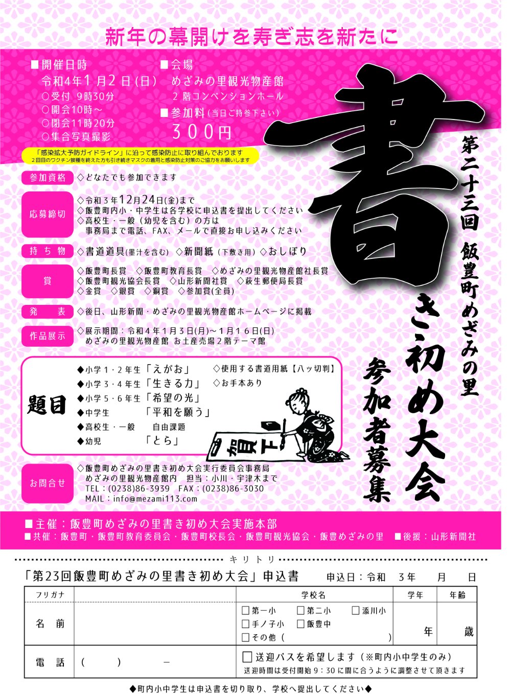 ◇飯豊町内の小中学生は各学校まで申込書を提出してください