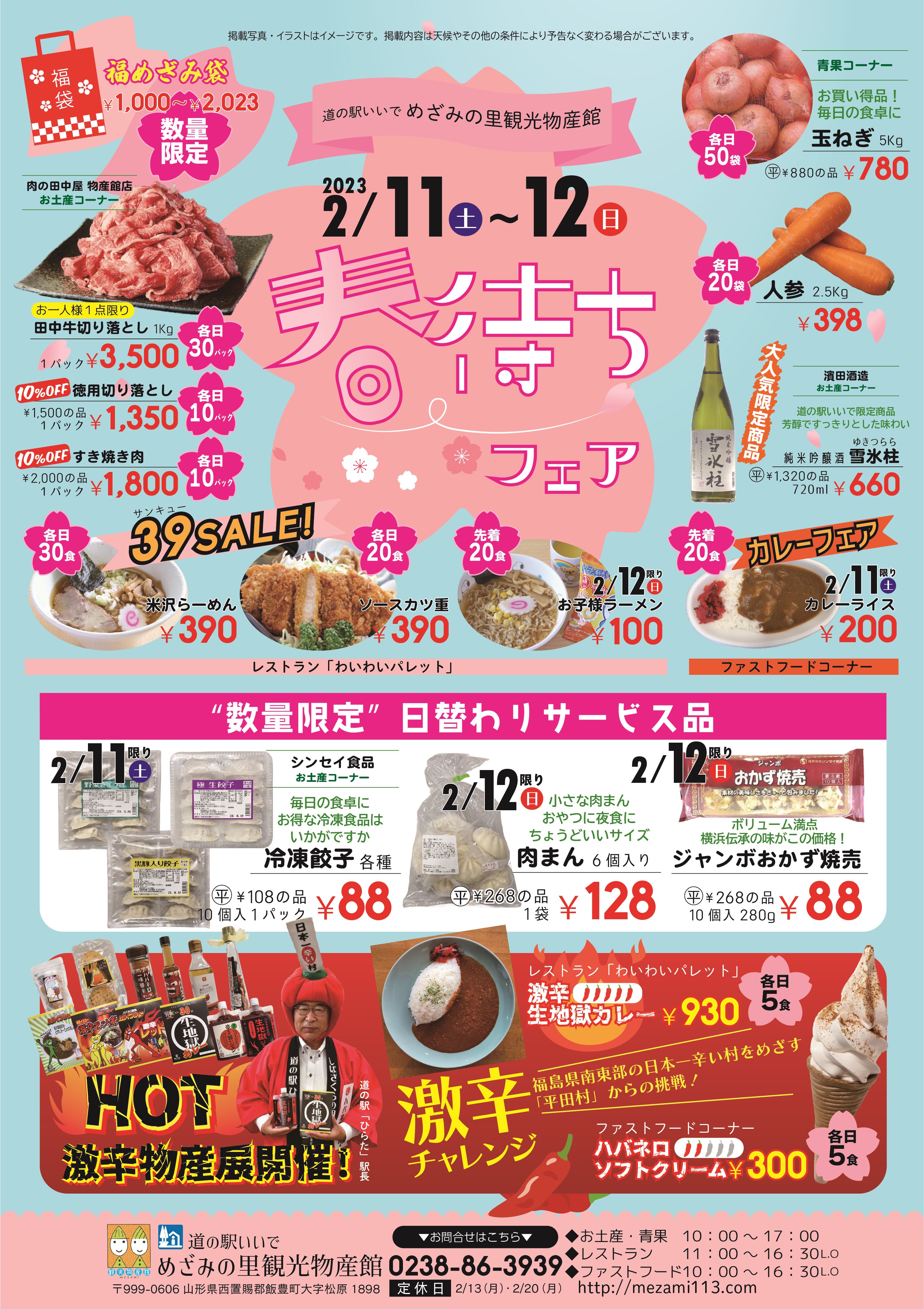 毎回恒例大人気、田中牛切り落としや玉ねぎ、大特価での販売の純米吟醸酒雪氷柱やレストラン、軽食コーナーでの大変お得な39セール!!その他にもお買い得商品を多数取り揃えております!