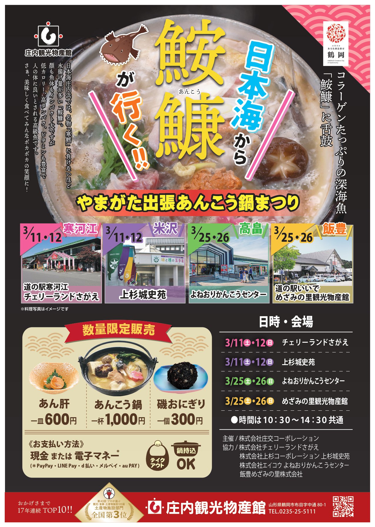 3/25(土)3/26(日)は庄内観光物産館からの出張販売!!あんこう鍋まつりを開催します!海の幸を是非この機会にご賞味くださいませ!(*^^*)日本酒がすすむこと間違いなし!