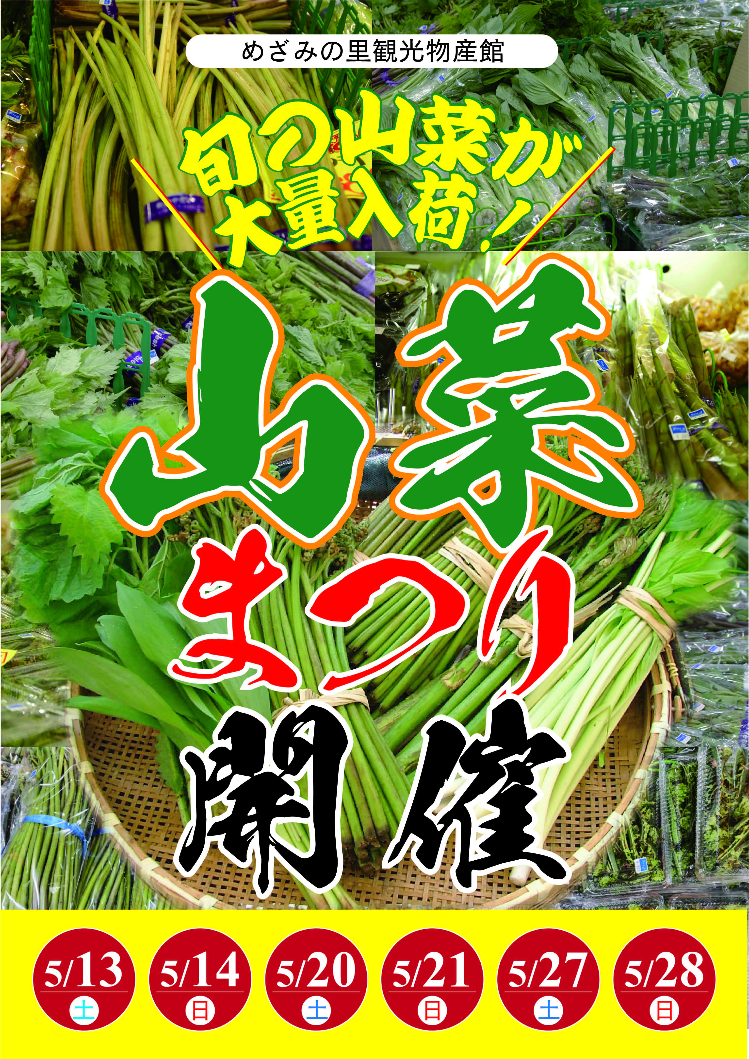 めざみの里観光物産館の【山菜まつり】も例年より1週間ほど早く開催します。