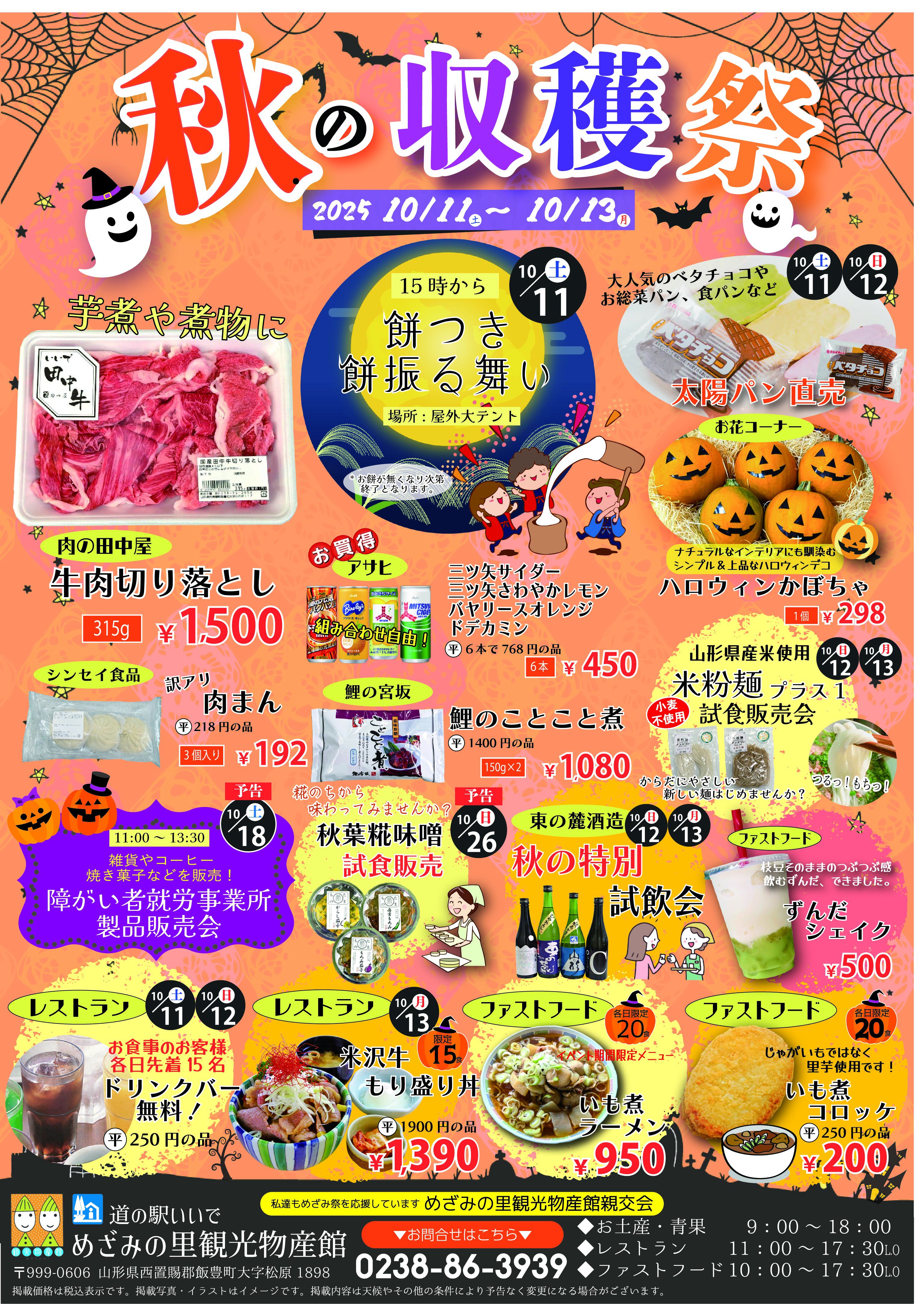 10/11~10/13の3日間、秋の収穫祭を行います!詳しくは添付のチラシをご覧くださいませ!皆様のご来館をお待ちしております!!